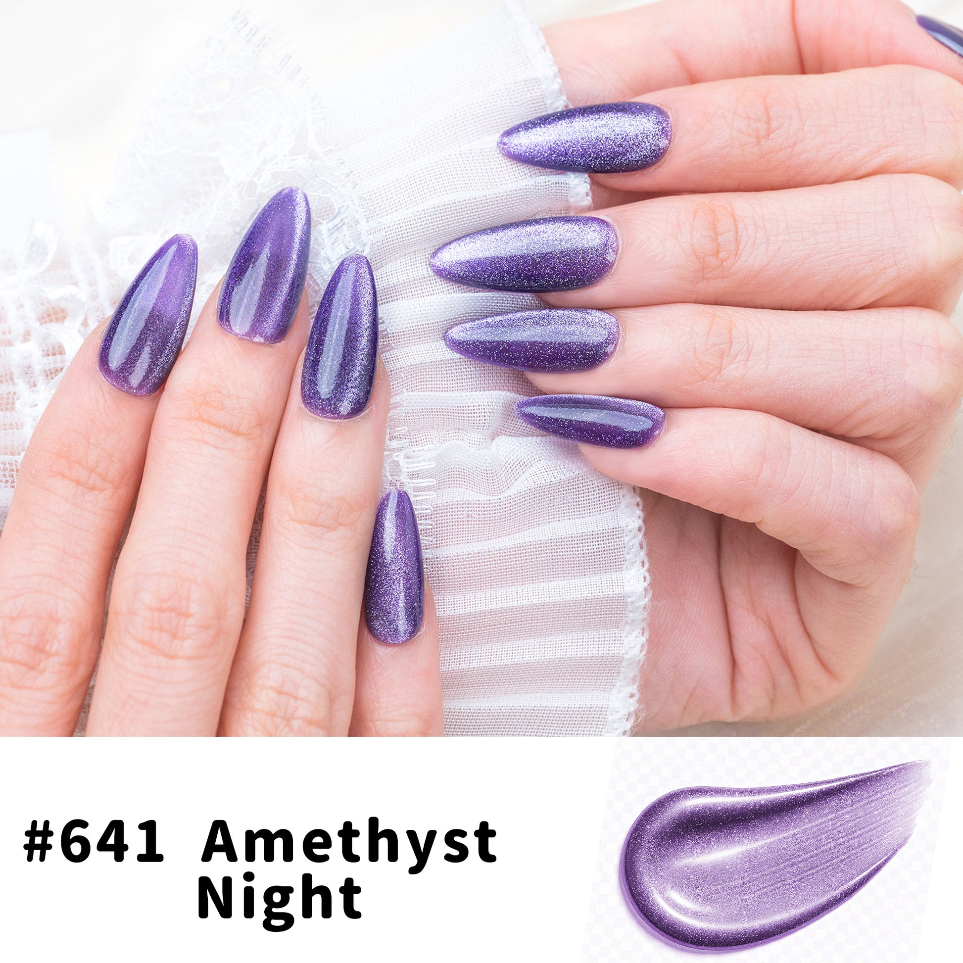 One-Step Gel Polish 3-in-1 Cat Eye 12ml|No Base or Top Coat Needed|UV Light Recommended|Easy Removal (#641 Amethyst Night)