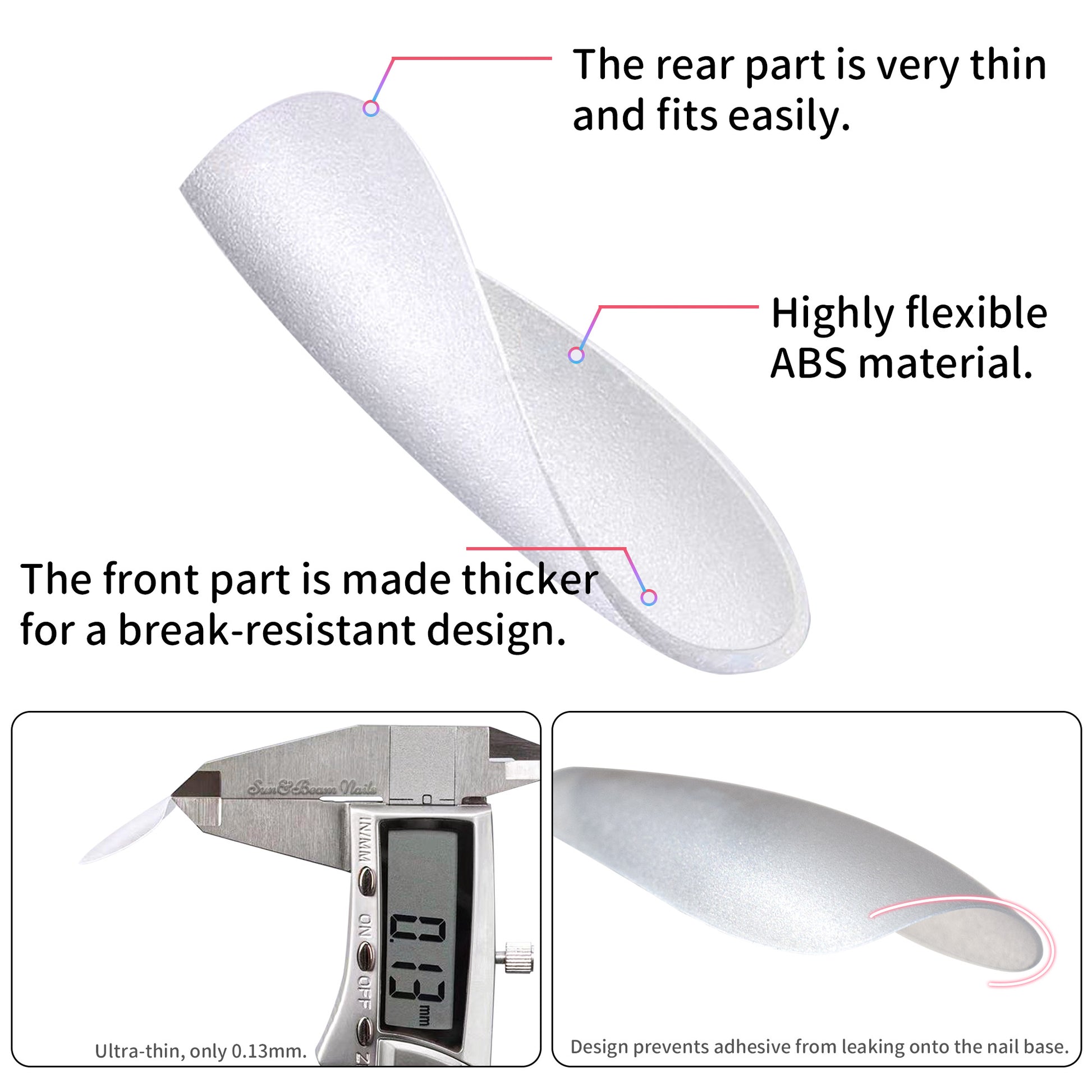 Comfortable Fit & Easy to Use with a Natural Look: The ultra-thin back end fits naturally on your nails, while the durable front end won’t leave creases even when bent. The contact surface is pre-buffed for stronger and more convenient application.