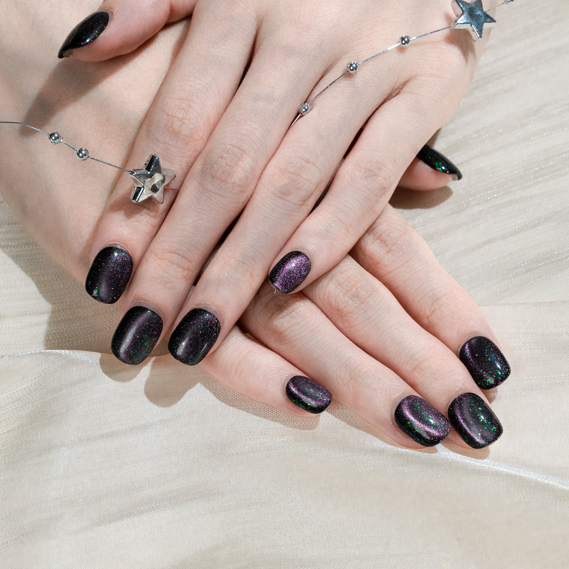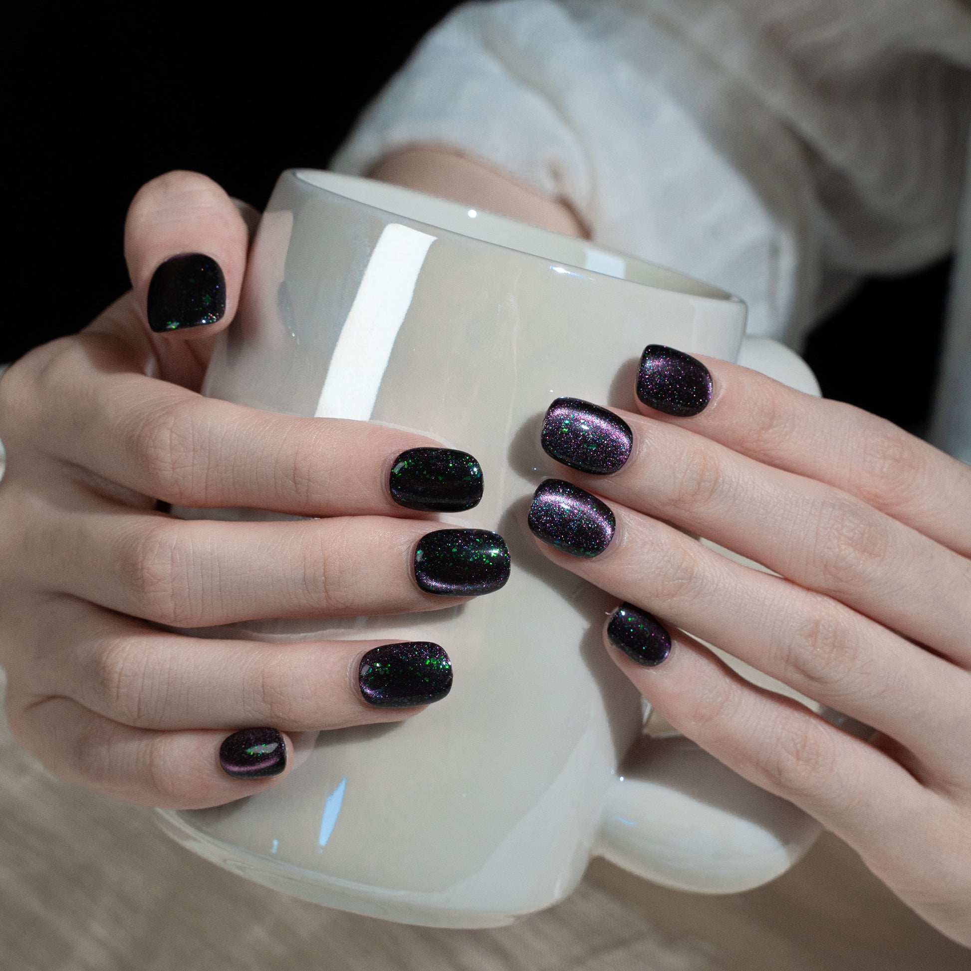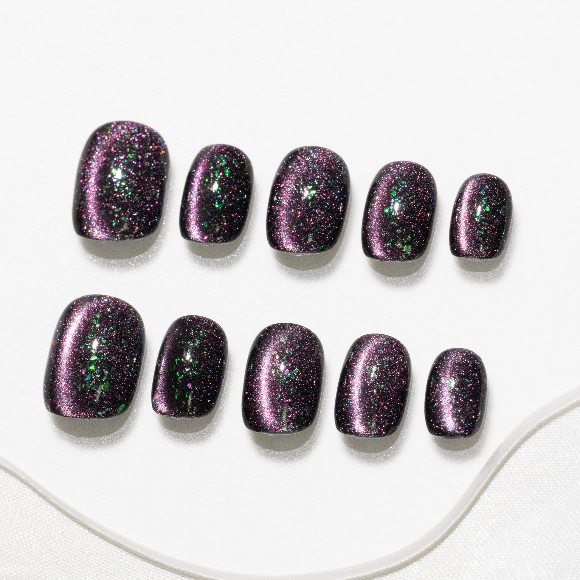 ハンドメイド ショート 短め スクエアオーバル ラウンド ネイルチップ– ブラック むらさき グリーン スウィート 無地 ワンカラー シンプル 10枚セット #256