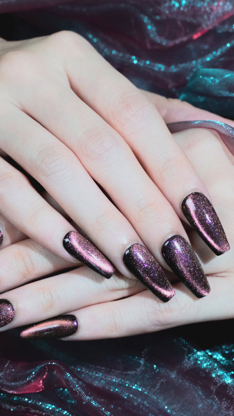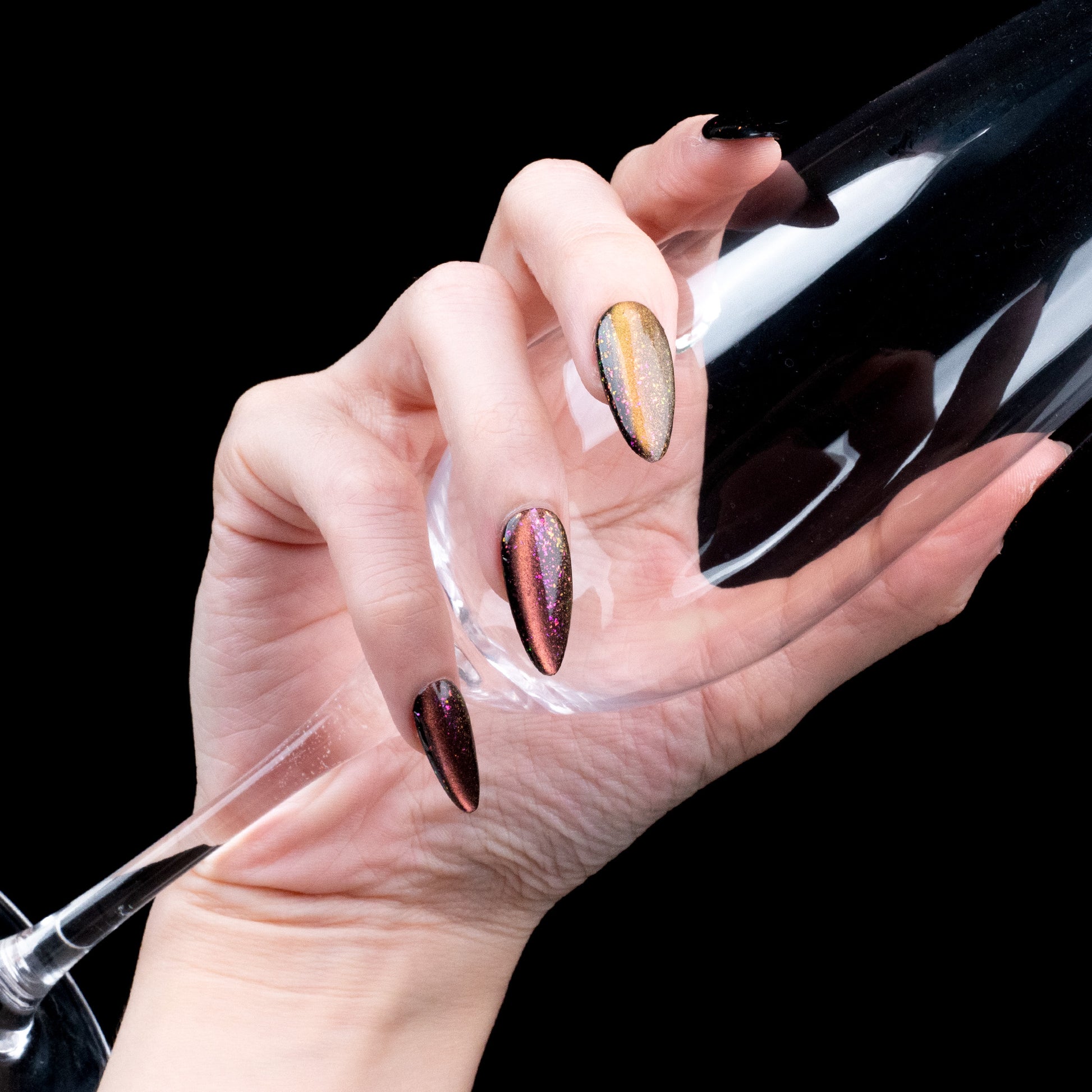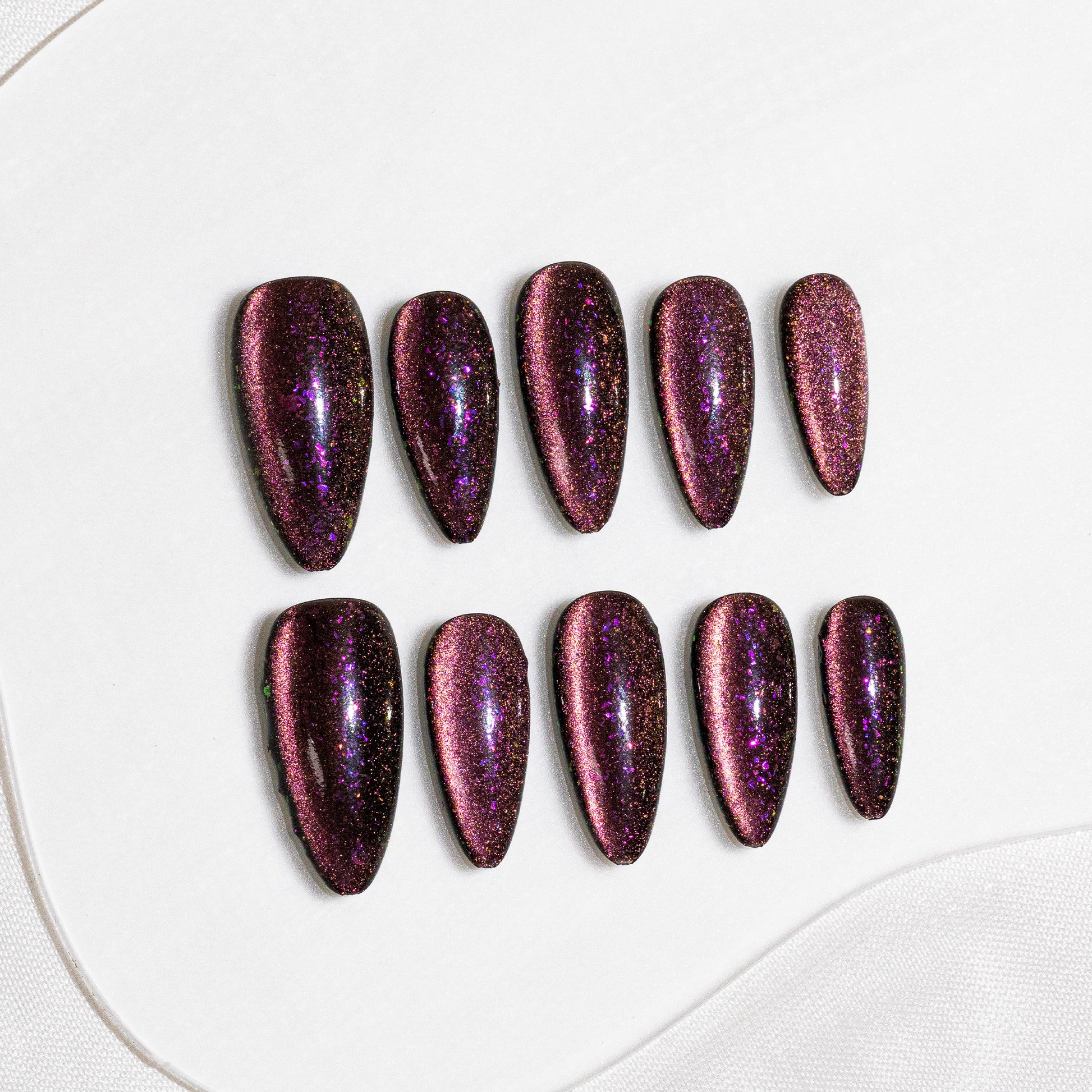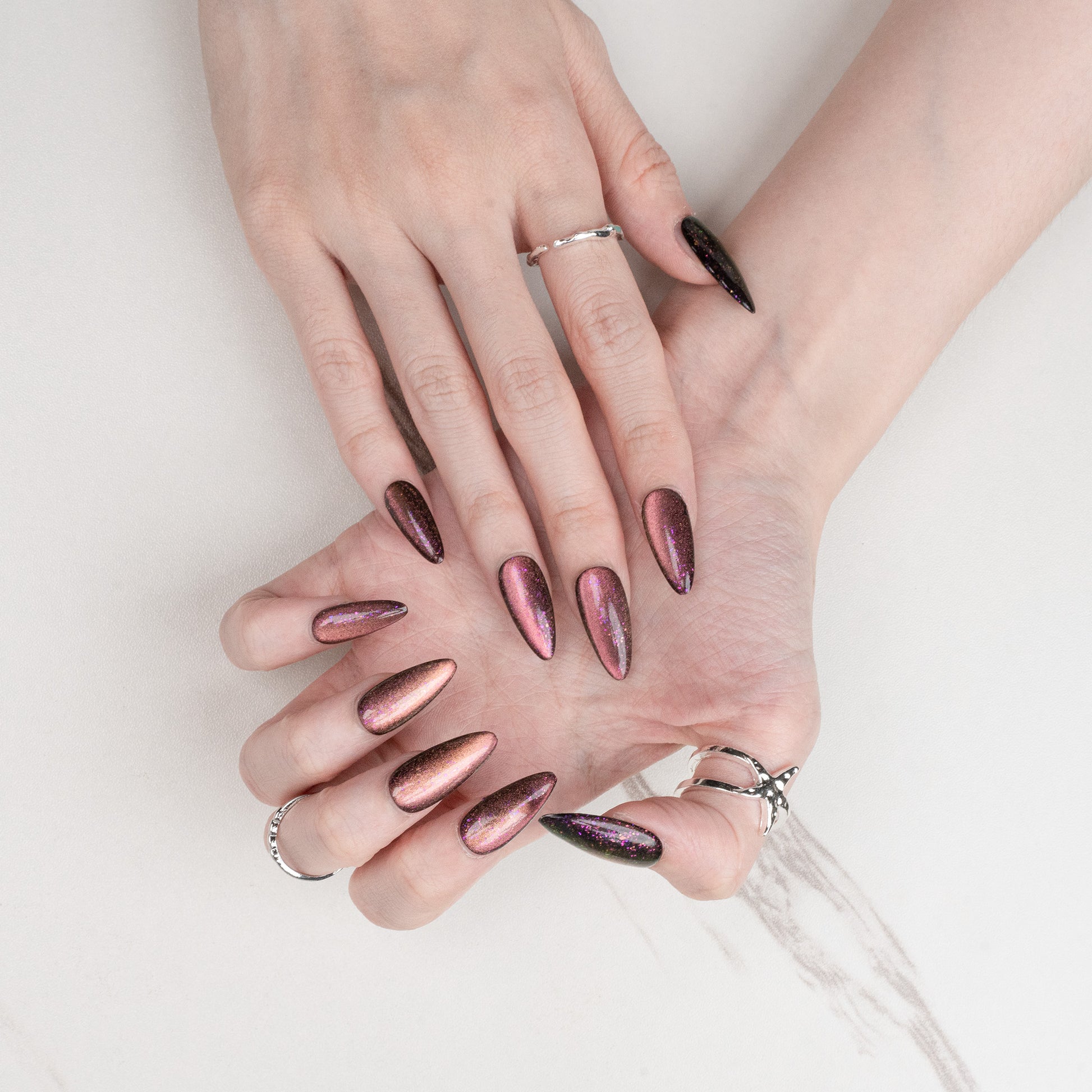 ハンドメイド ミディアム アーモンド ネイルチップ– ブラック ピンク むらさき マグネット 無地 ワンカラー シンプル 10枚セット #258