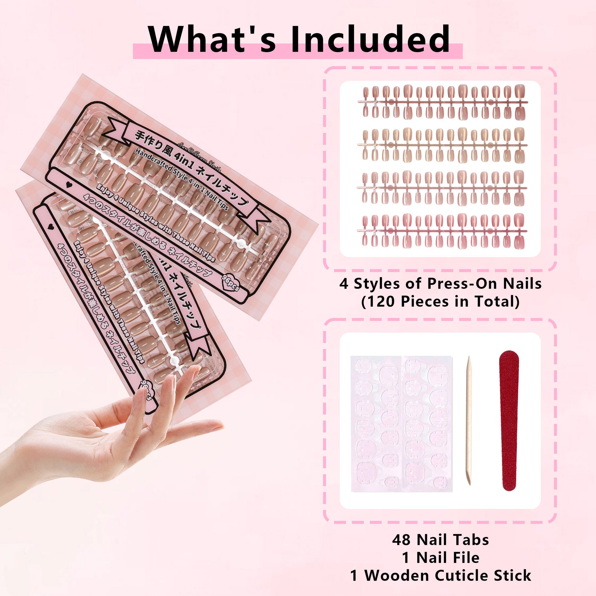 Each box includes 120 pieces in a wide range of sizes, ensuring a perfect fit and multiple wears. Plus, it comes with 48 adhesive tabs, a nail file, and a wooden stick, making it beginner-friendly and ready to use right out of the box. For longer wear, you can pair it with nail glue (sold separately).