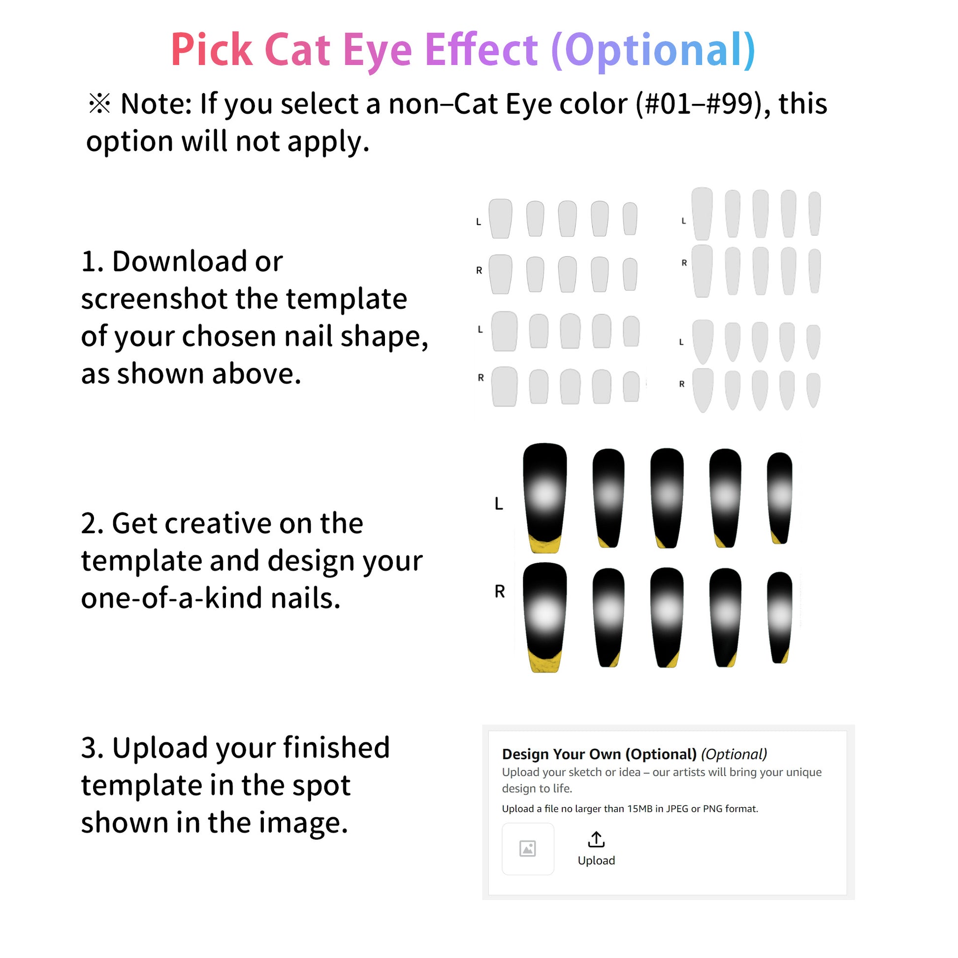 Sun&Beam Nails Custom Cat Eye Glitter Metallic Chrome Press-On Nails Handmade Fake Nails Select Shape, Color, Glitter & Style 10 Pcs