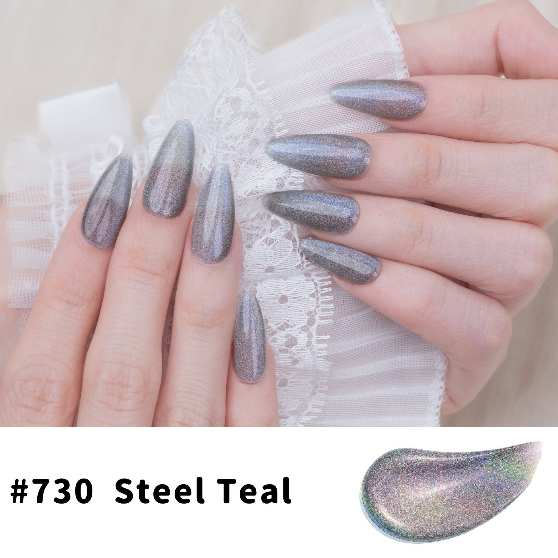 One-Step Gel Polish 3-in-1 Cat Eye 12ml|No Base or Top Coat Needed|UV Light Recommended|Easy Removal (#730 Steel Teal)