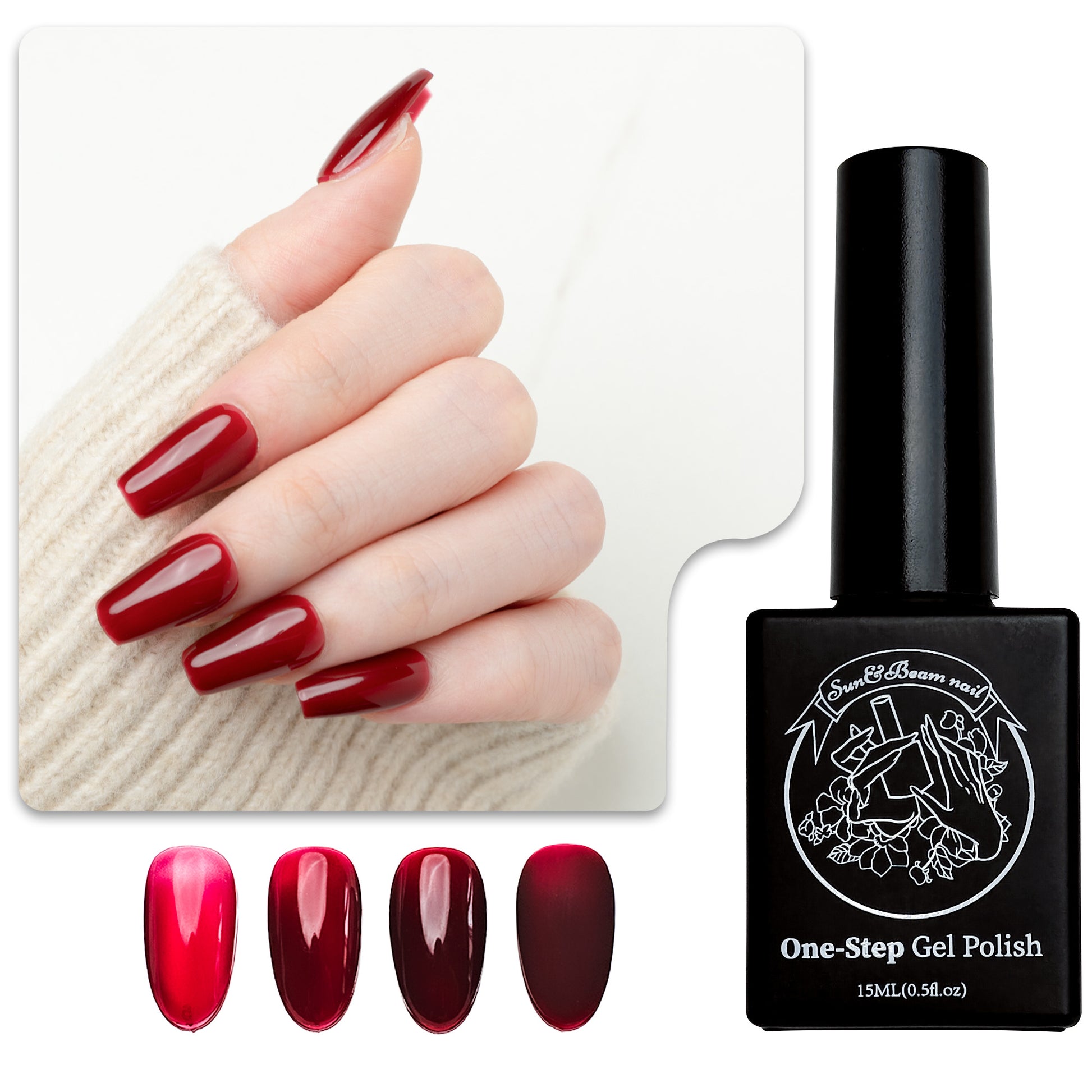 Sun&Beam’s 3-in-1 Gel Polish combines base coat, color, and top coat in one seamless formula — no extra layers, no fuss. Just apply, cure under a UV/LED lamp, and you’re ready to shine.