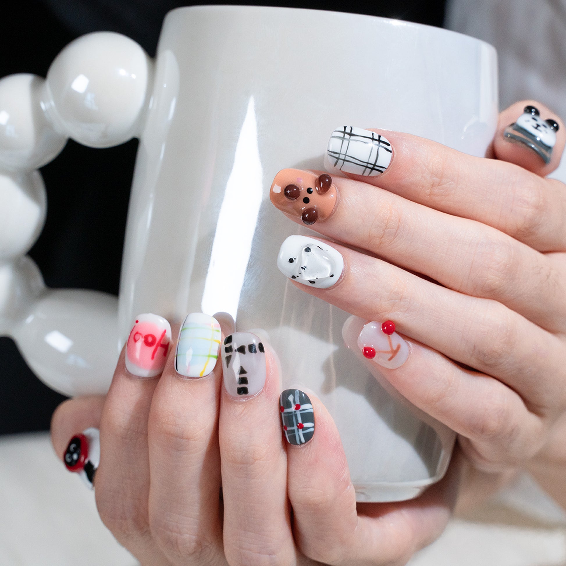 Handmade Short Squoval Round Press-On Nails - Brown 3D Sweet Puppy 10 Pcs #278