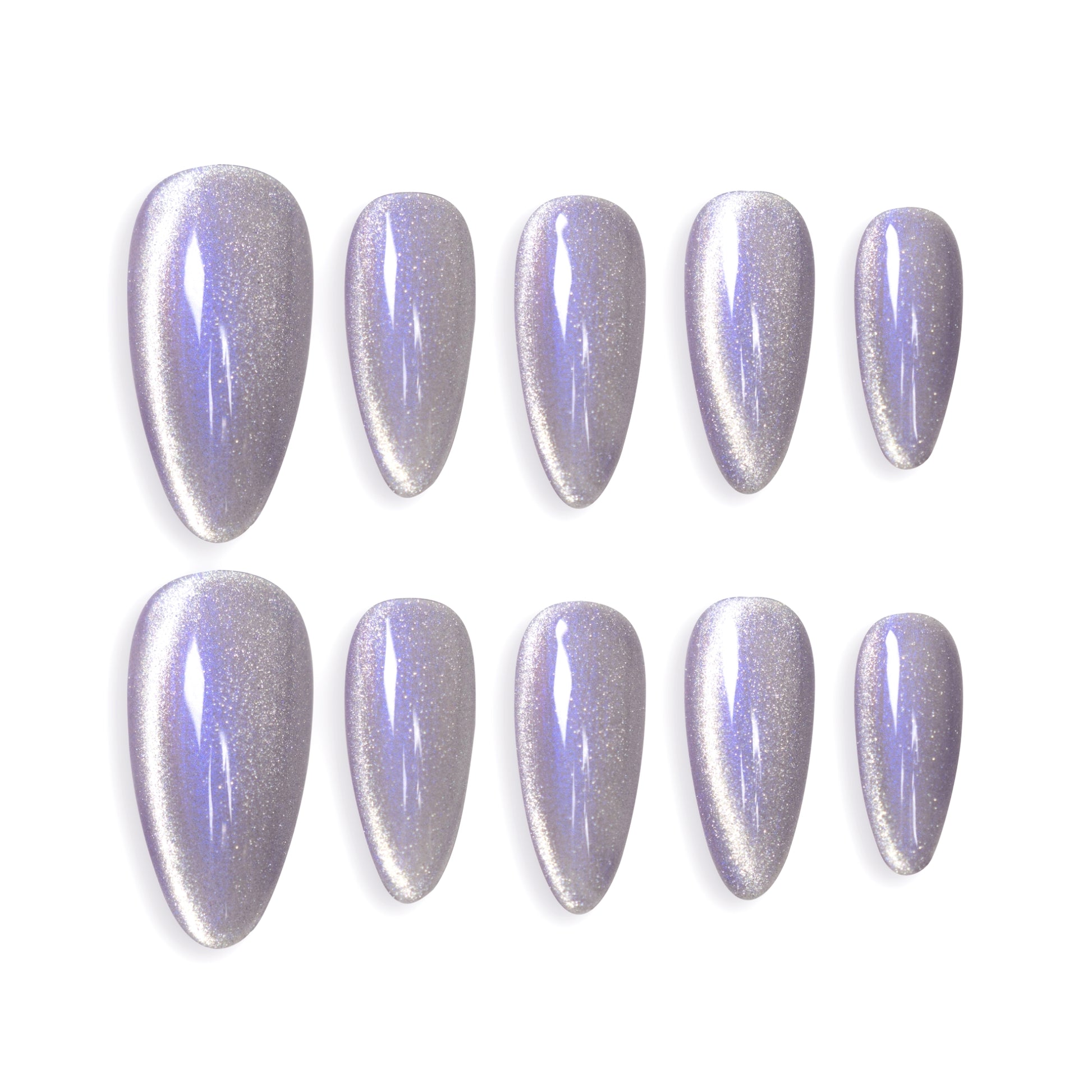 Handmade Medium Almond Press-On Nails - Purple Aurora Magnet Minimalist Gradation 10 Pcs #118